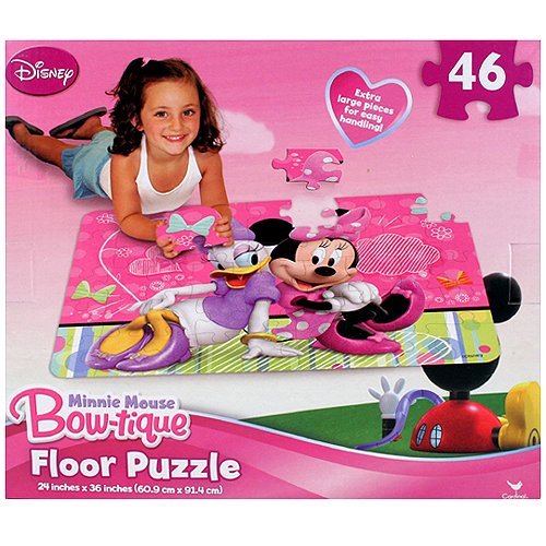 The Disney Minnie Mouse Bow-tique Floor Puzzle has 46 extra large puzzle pieces for easy handling! Your child will have hours of fun putting it together over and over again! Completed puzzle size: 24 in. x 36 in.